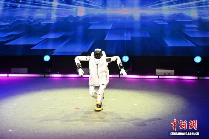 图为机器东谈主演绎街舞看成。俞靖 摄
